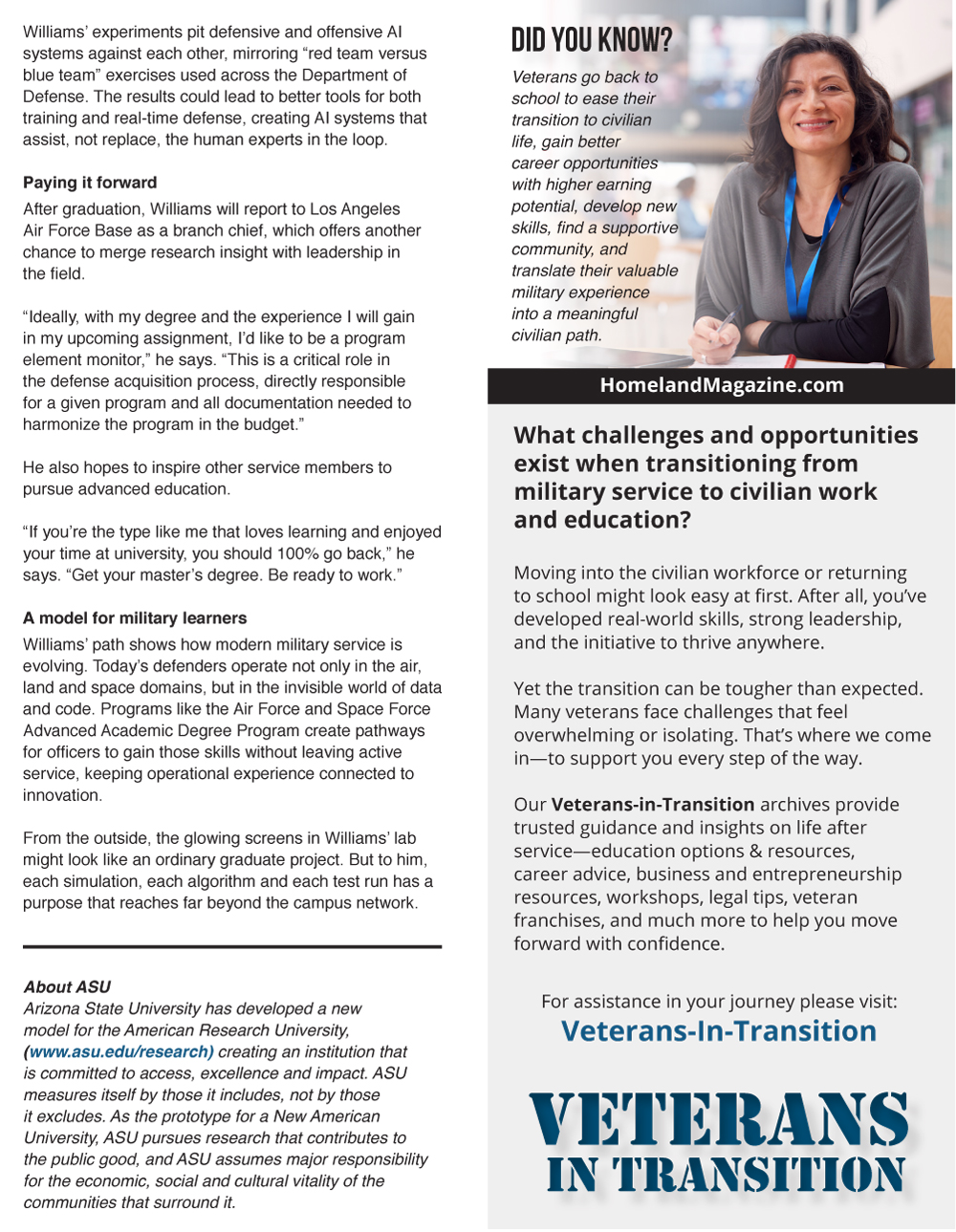 Inside a dimly lit computer lab at Arizona State University, U.S. Space Force Maj. Tyler Williams leans over a glowing monitor, lines of simulated network traffic scrolling by faster than most eyes could follow.
