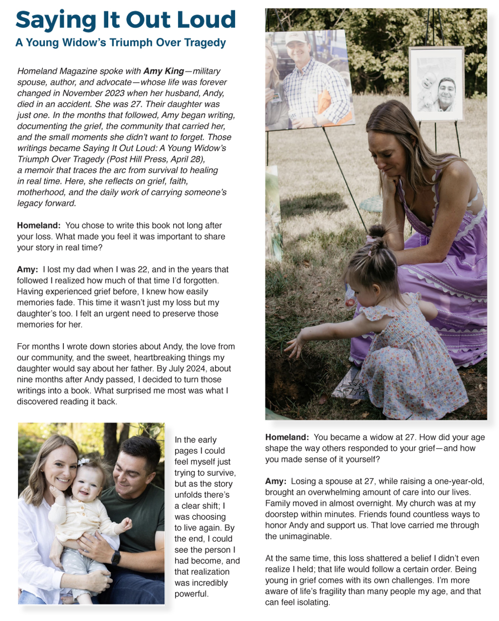 Homeland Magazine spoke with Amy King—military spouse, author, and advocate—whose life was forever changed in November 2023…